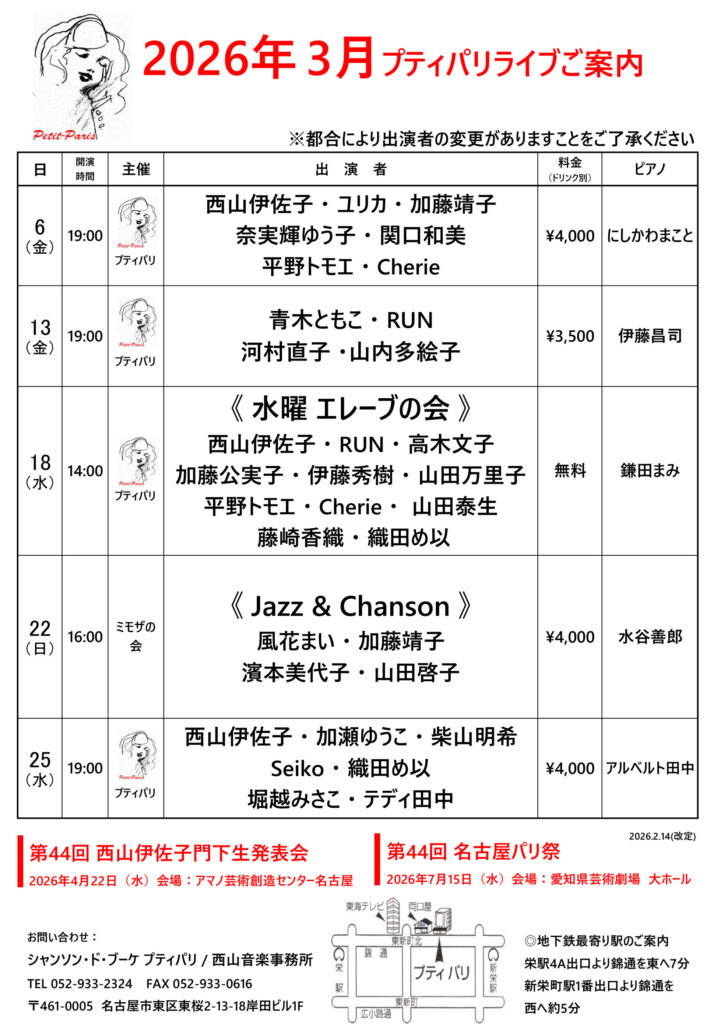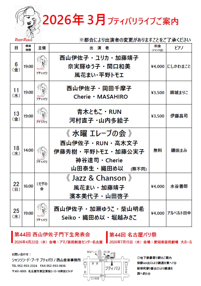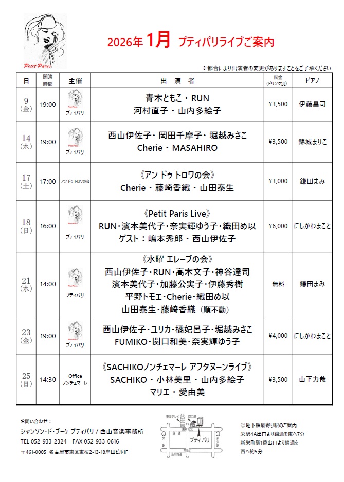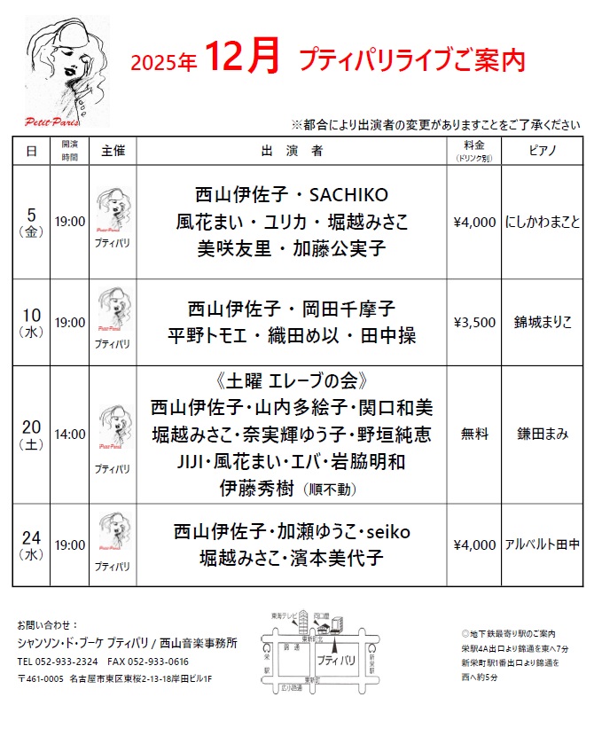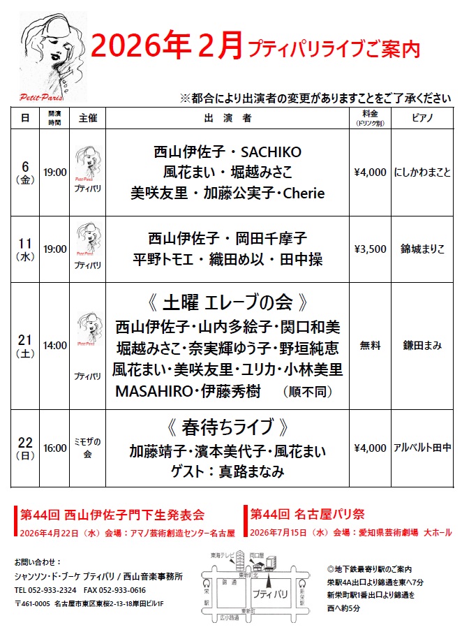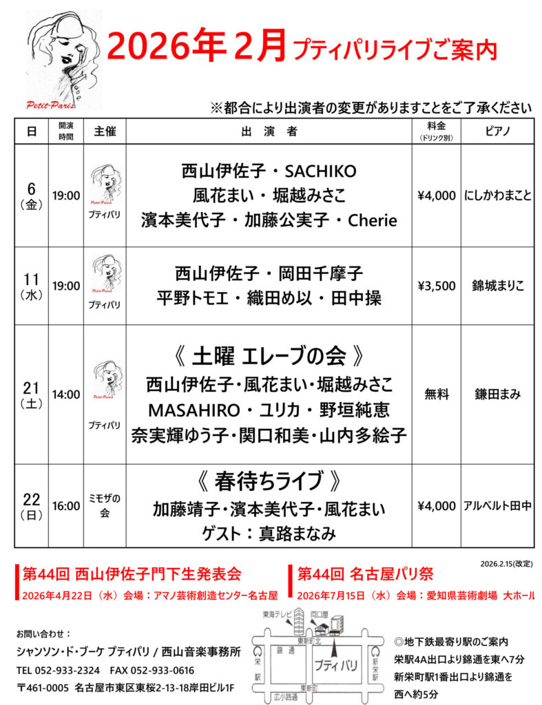シャンソン・ド・ブーケ・プティパリ 西山伊佐子及びスタッフ一同