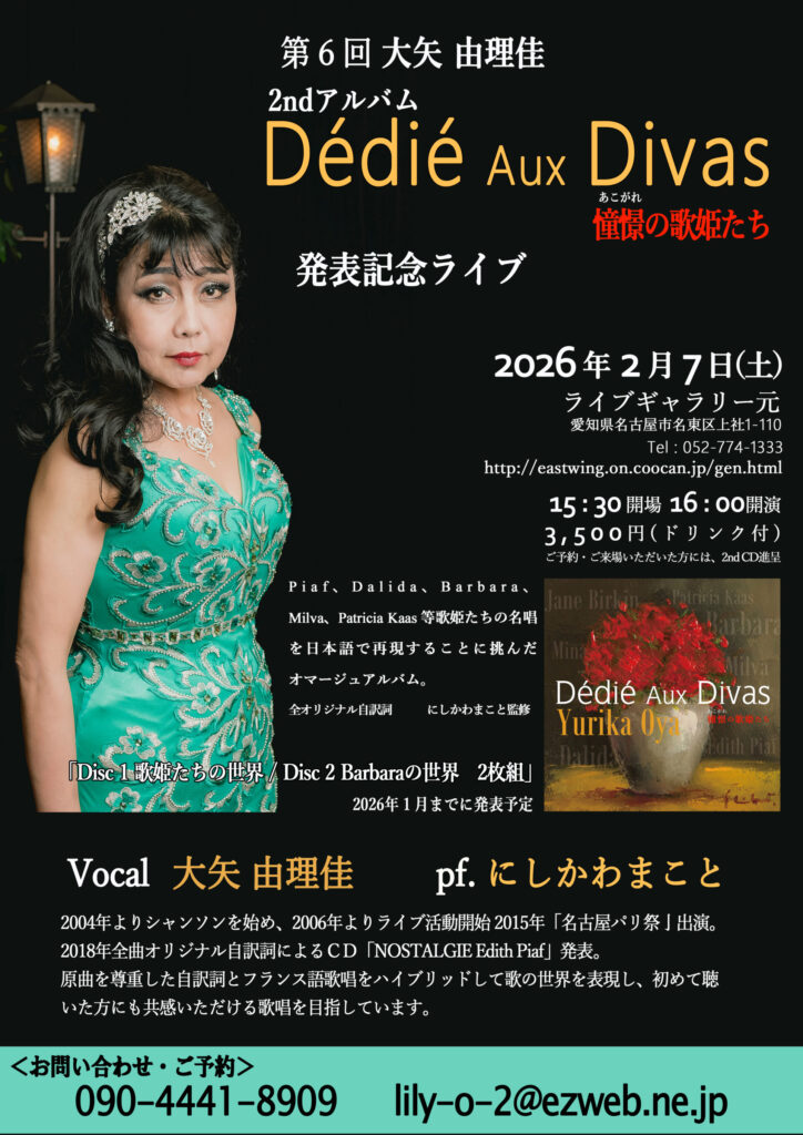 名古屋の音楽文化発展の為シャンソンを広げていきたいと思っております